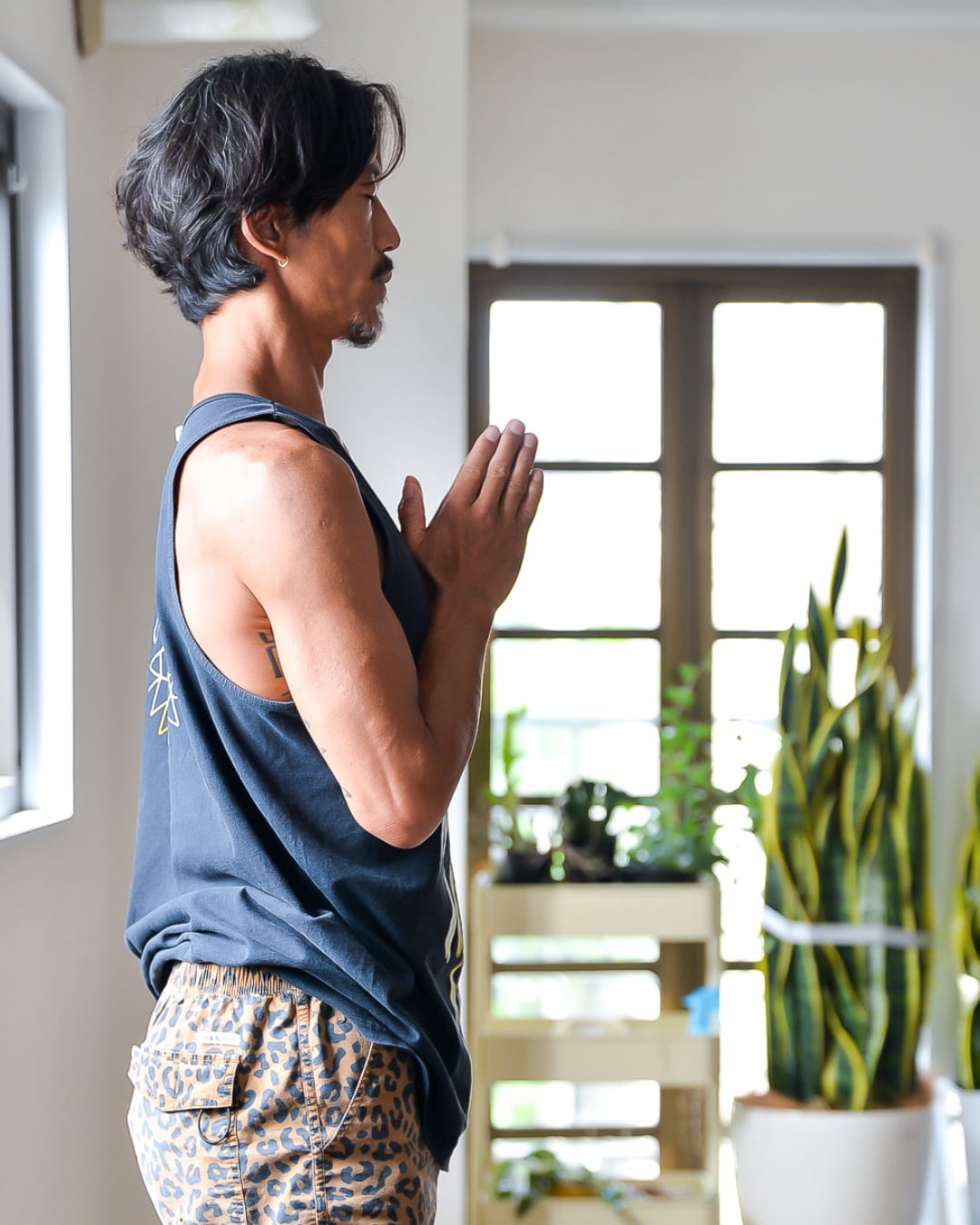 気持ち良いFLOWと呼吸で、しっかりと背骨、肩周りや股関節を動かし、全身で汗を流し、身体を目覚めさせていきます。